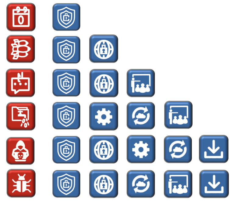 - if an Attacker has thrown 3 Phishing, then the Defender can counter with 3+ User Awareness or Internet Security (or via Defence in Depth, which is a valid defence against all attacks)
